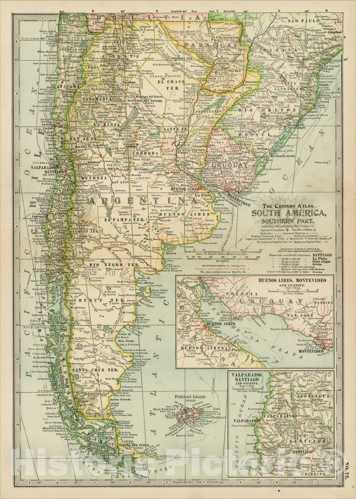 Historic Map : South America, Southern Part, 1897, The Century Company, Vintage Wall Art