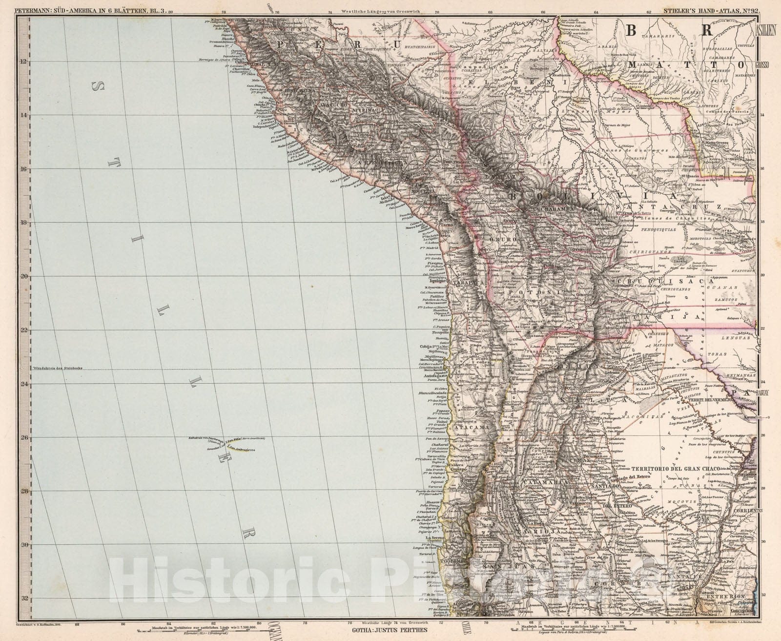 Historic Map : Sud-Amerika in six Blattern, Bl. three (South America, Sheet three)., 1880, Vintage Wall Art