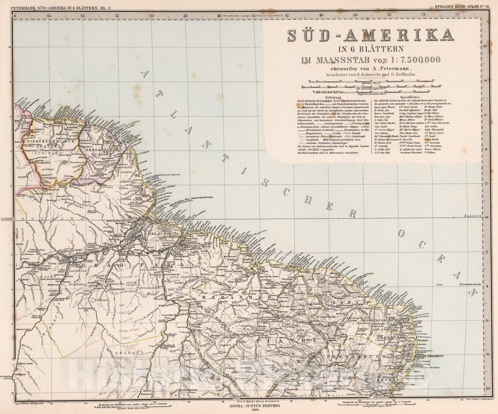 Historic Map : Sud-Amerika in six Blattern, Bl. two (South America, Sheet two)., 1880, Vintage Wall Art