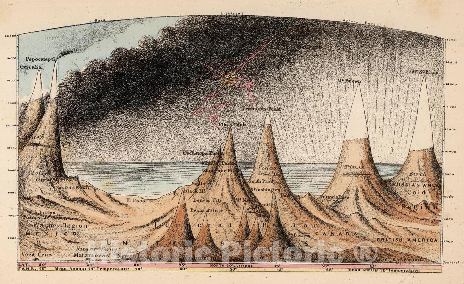 Historic Map : Survey Book - 1867 Frontispiece: Influence of Climate in North and South America. - Vintage Wall Art