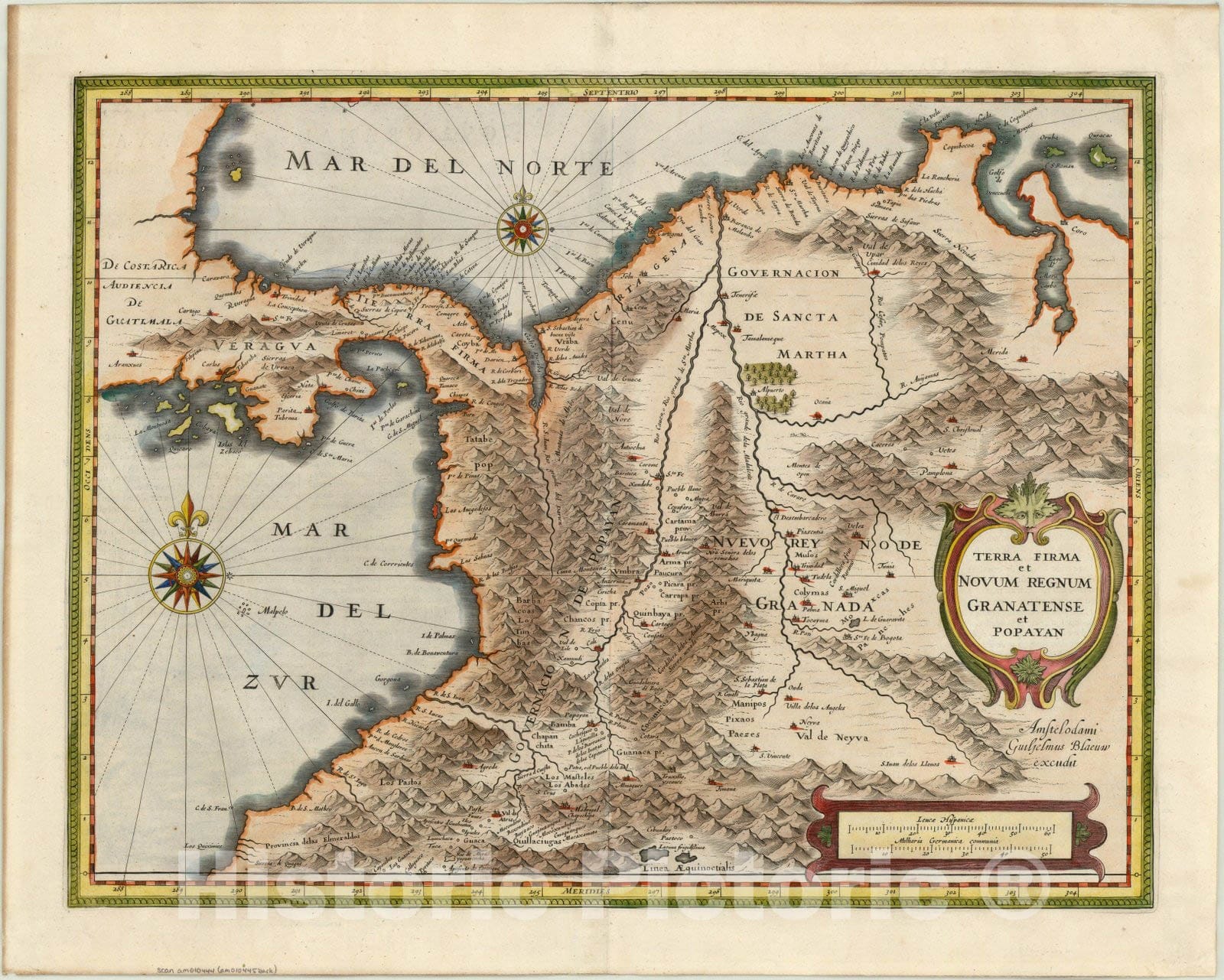 Map : Panama and northern South America 1631, Terra Firma et Novum Regnum Granatense et Popayan, Antique Vintage Reproduction