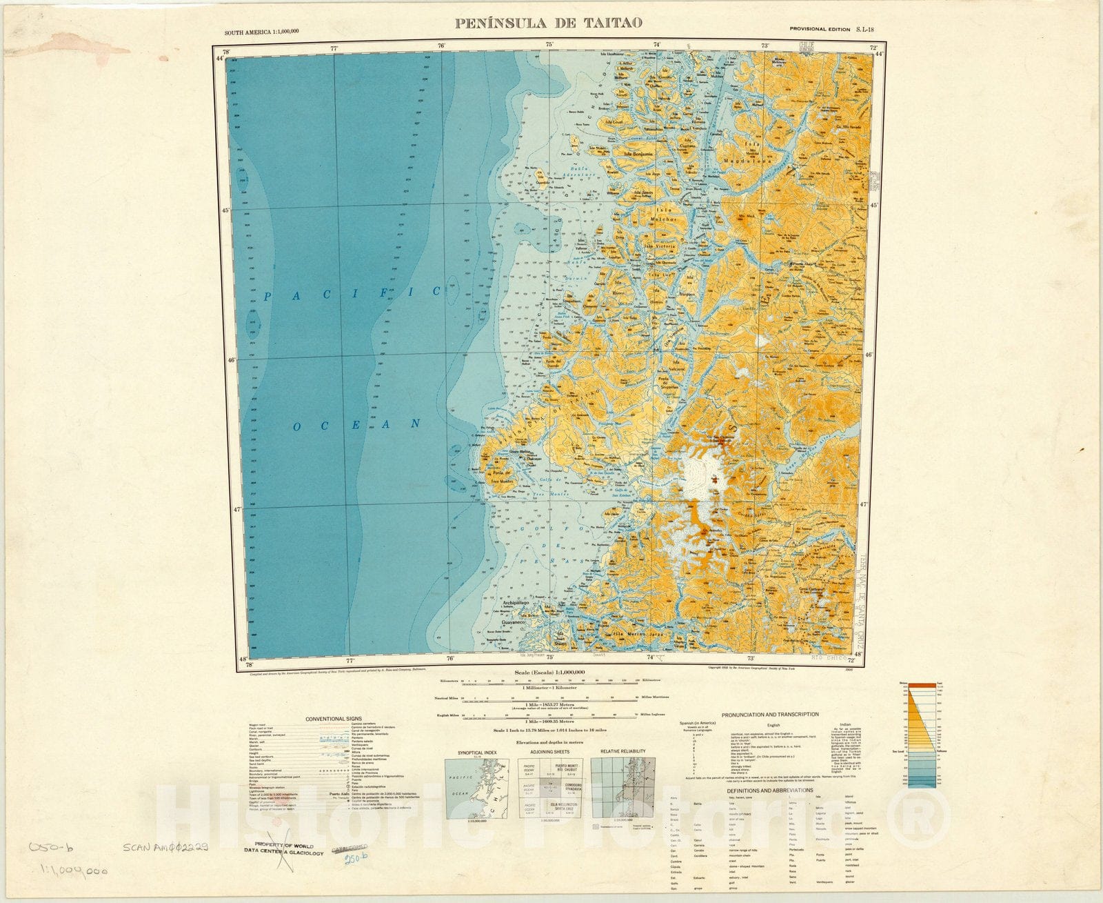 • Map : Peninsula de Taitao 1956, South America 1:1,000,000 Peninsula de Taitao S.L. 18 , Antique Vintage Reproduction
