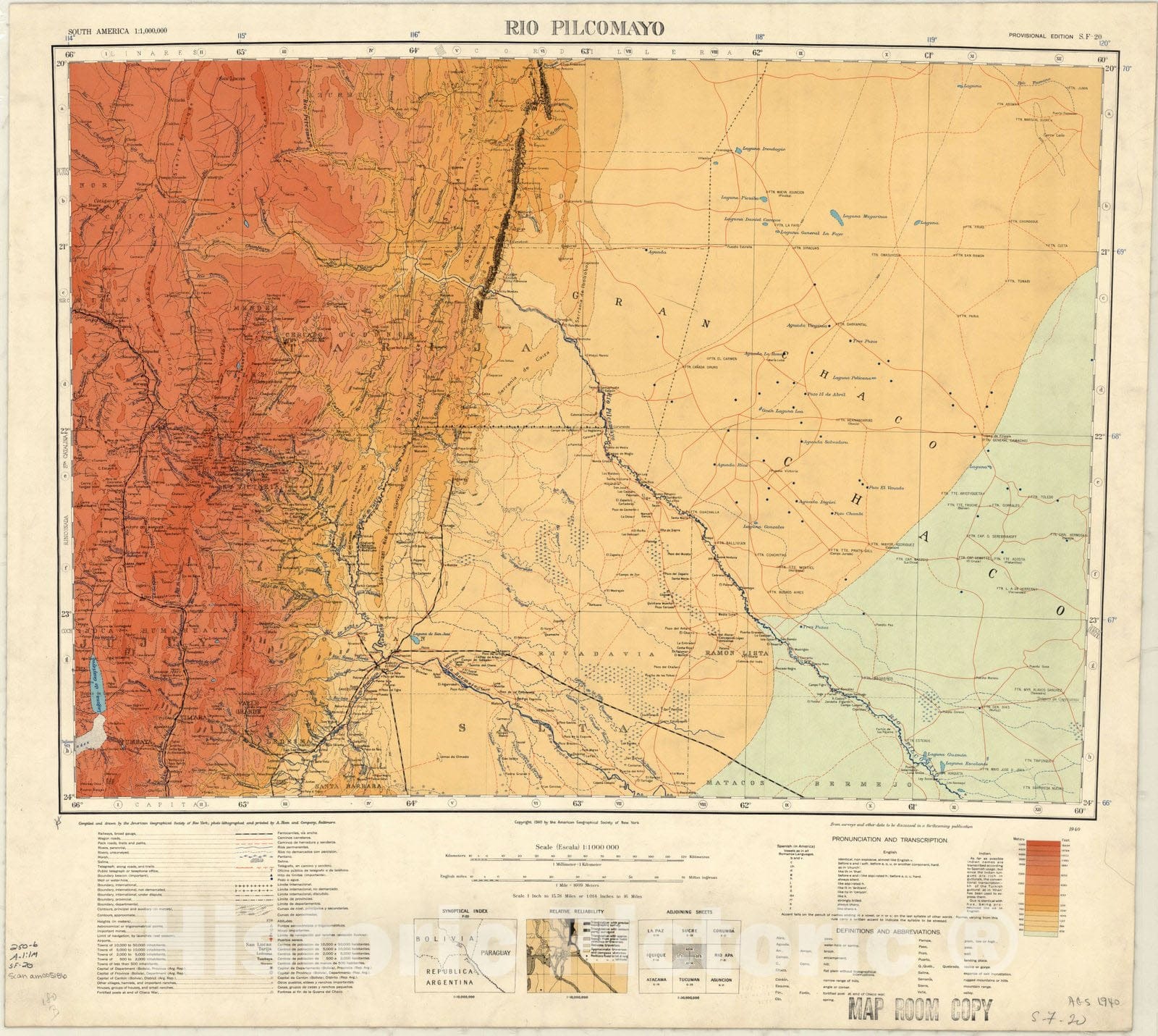 South America 1:1,000,000. Rio Pilcomayo / compiled and drawn by the American Geographical Society of New York ; photo lithographed and printed by A. Hoen and Company, Baltimore