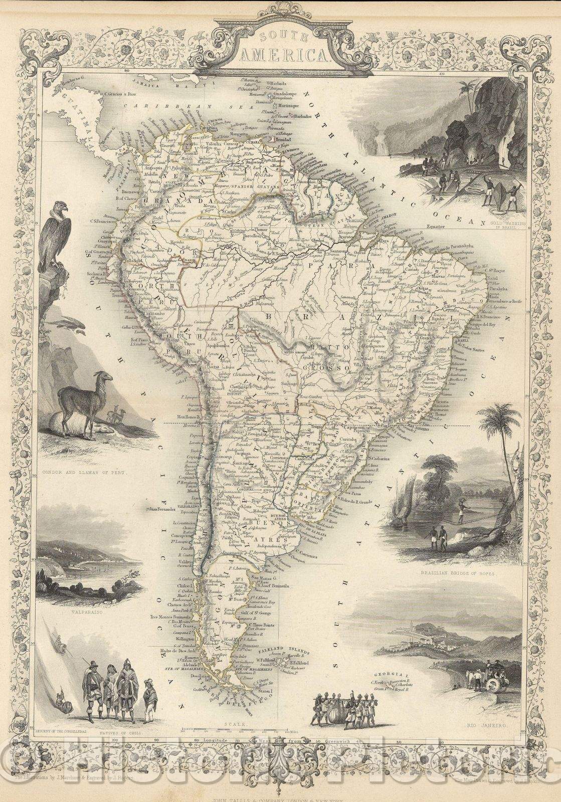 Historic Map : South America, 1848 , Vintage Wall Art