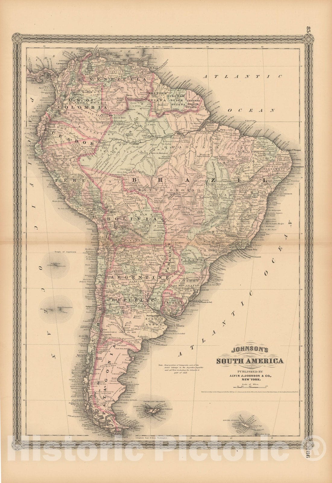 • Historic Map : South America 1863 , v2, Vintage Wall Art