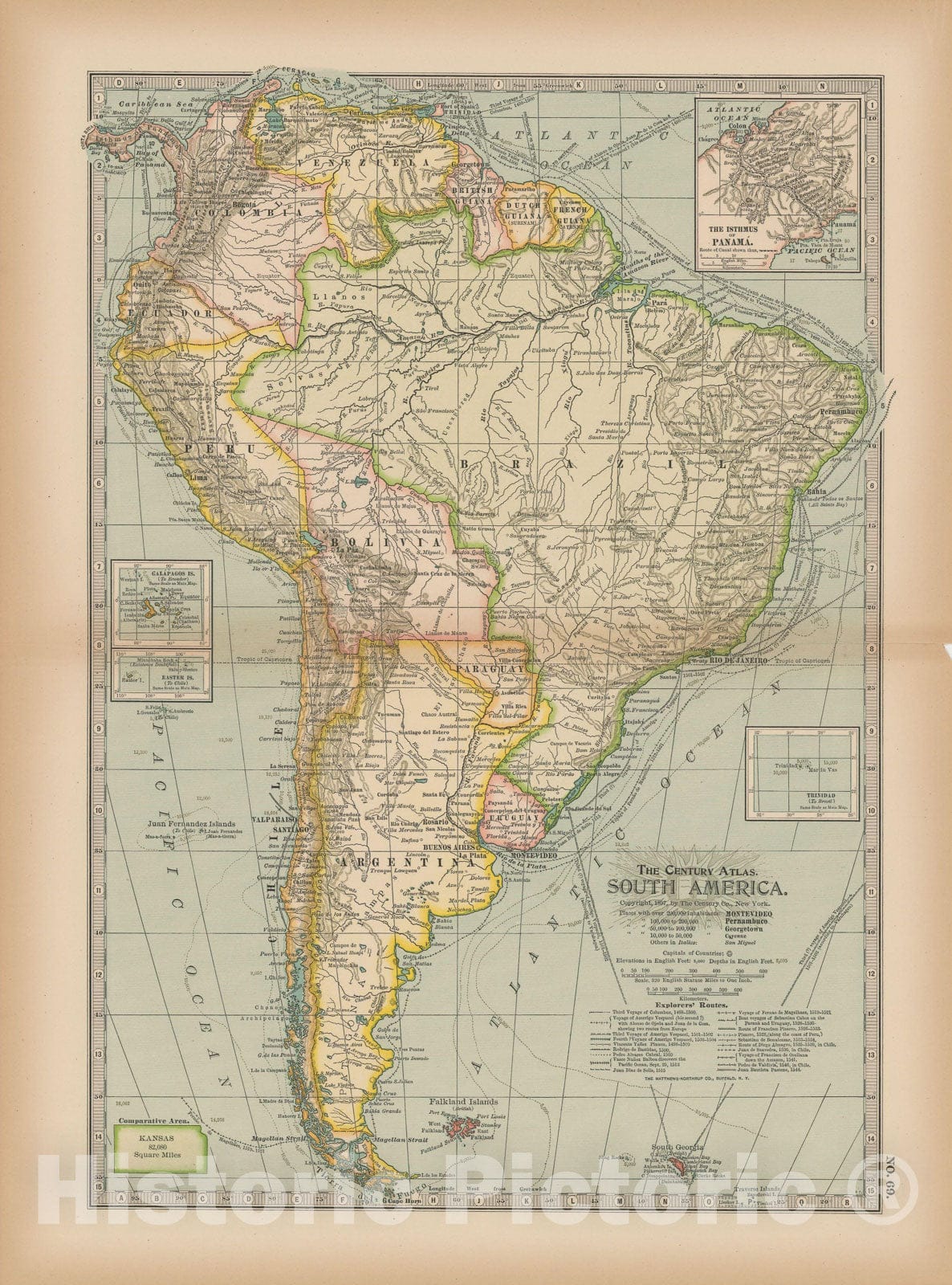 Historic Map : South America 1897 , The Century Atlas World , v2, Vintage Wall Art