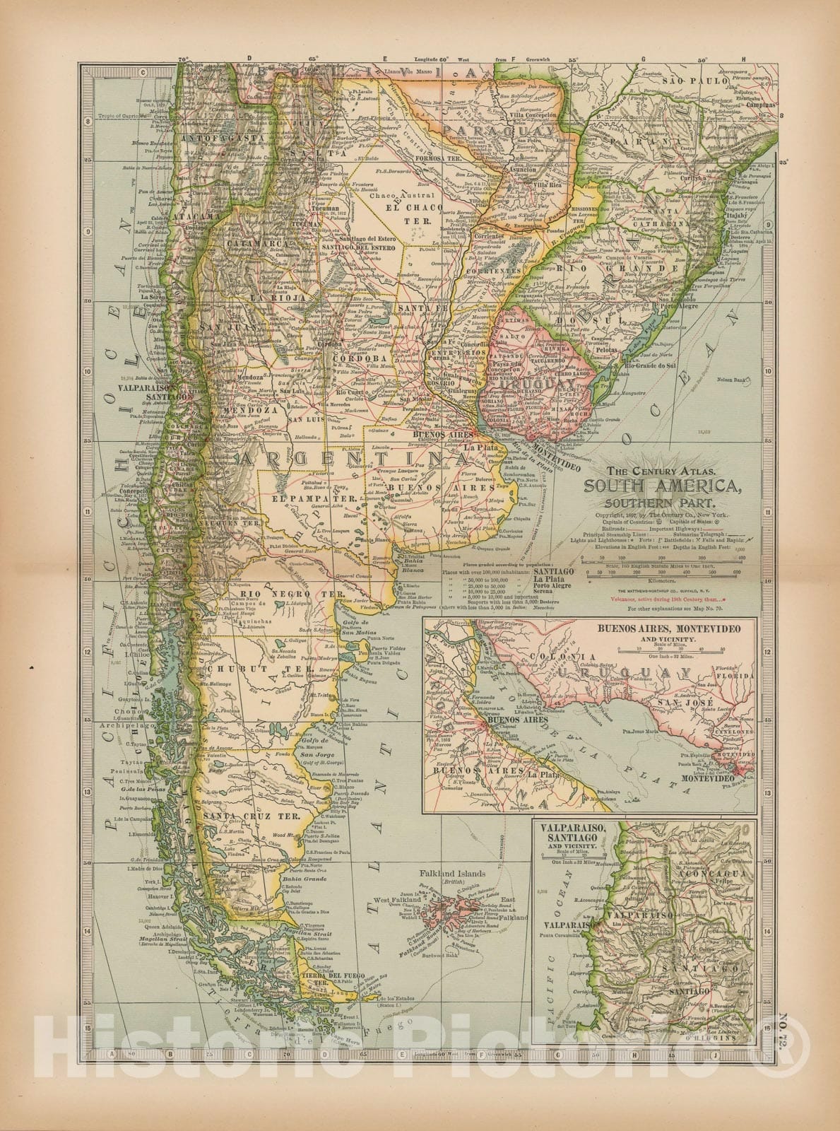 • .Historic Map : South America 1897 , The Century Atlas World , v4, Vintage Wall Art
