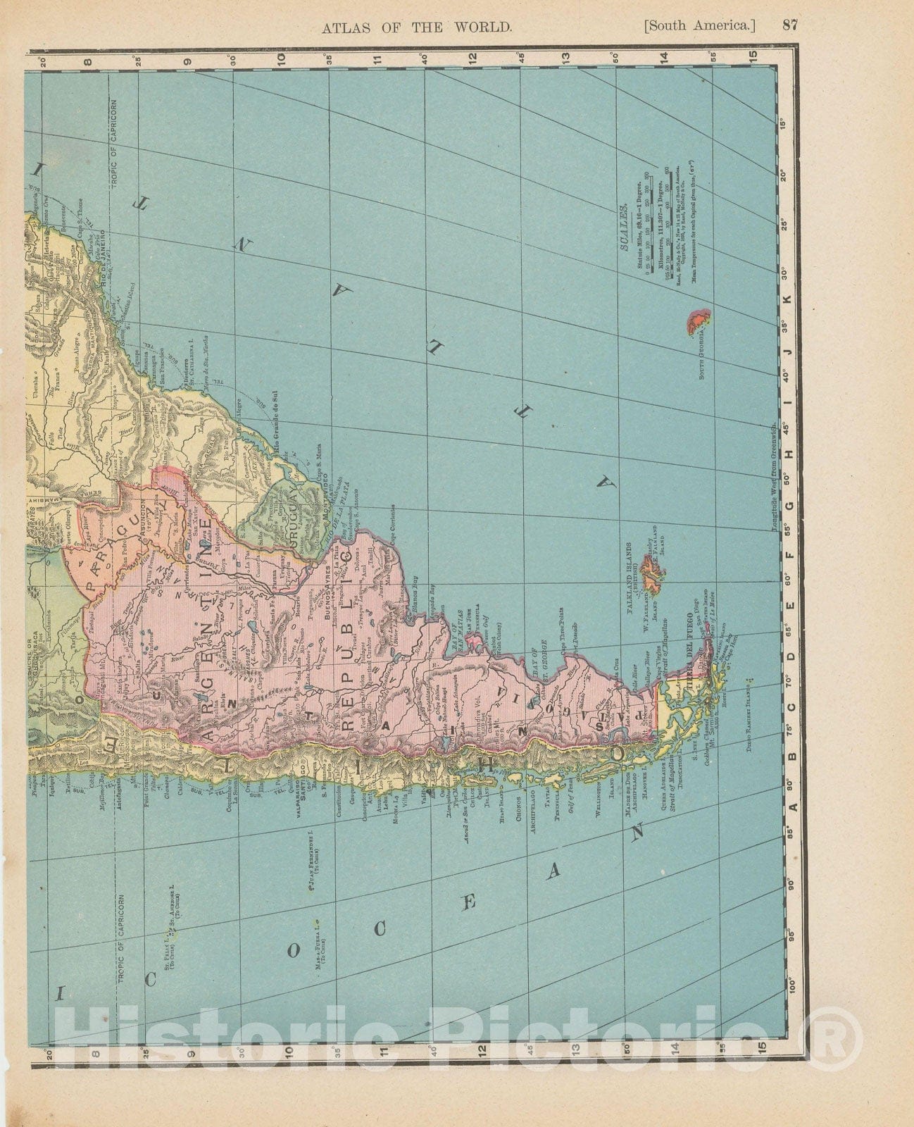 Historic Map : South America 1900 , Universal Atlas World , Vintage Wall Art