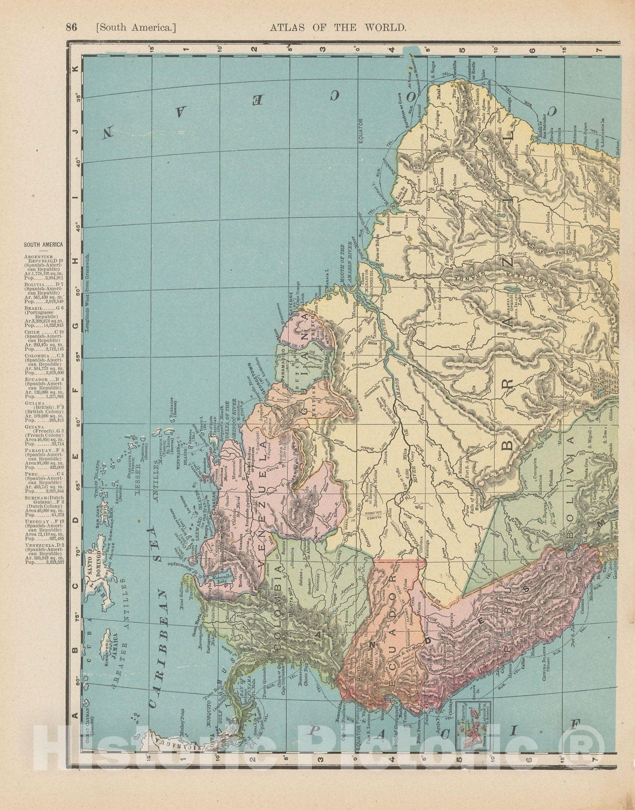 Historic Map : South America 1900 , Universal Atlas World , v2, Vintage Wall Art