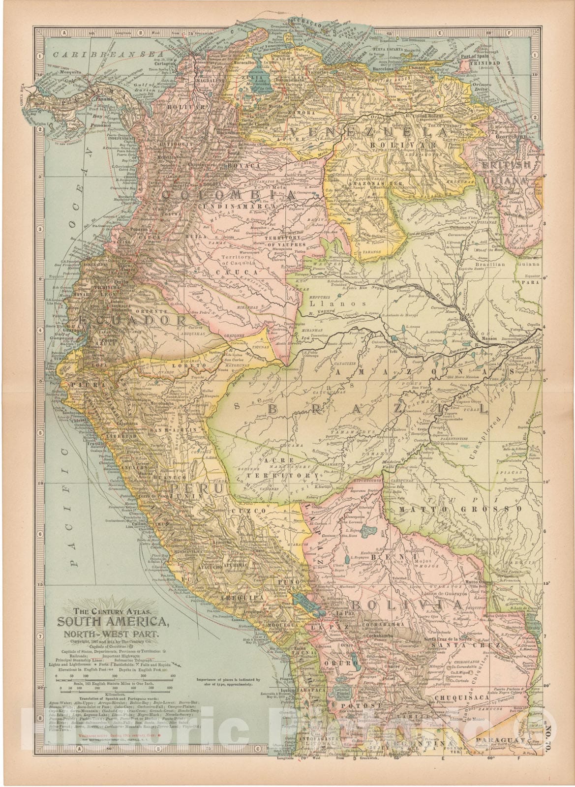 Historic Map : South America 1914 , Century Atlas of the World, v2, Vintage Wall Art
