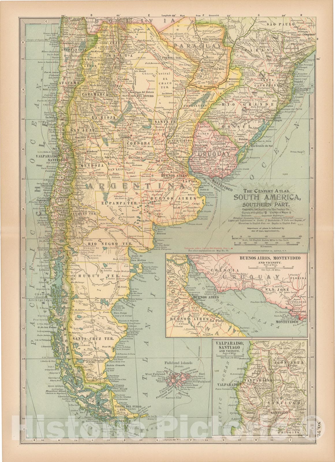 Historic Map : South America 1914 , Century Atlas of the World, v4, Vintage Wall Art