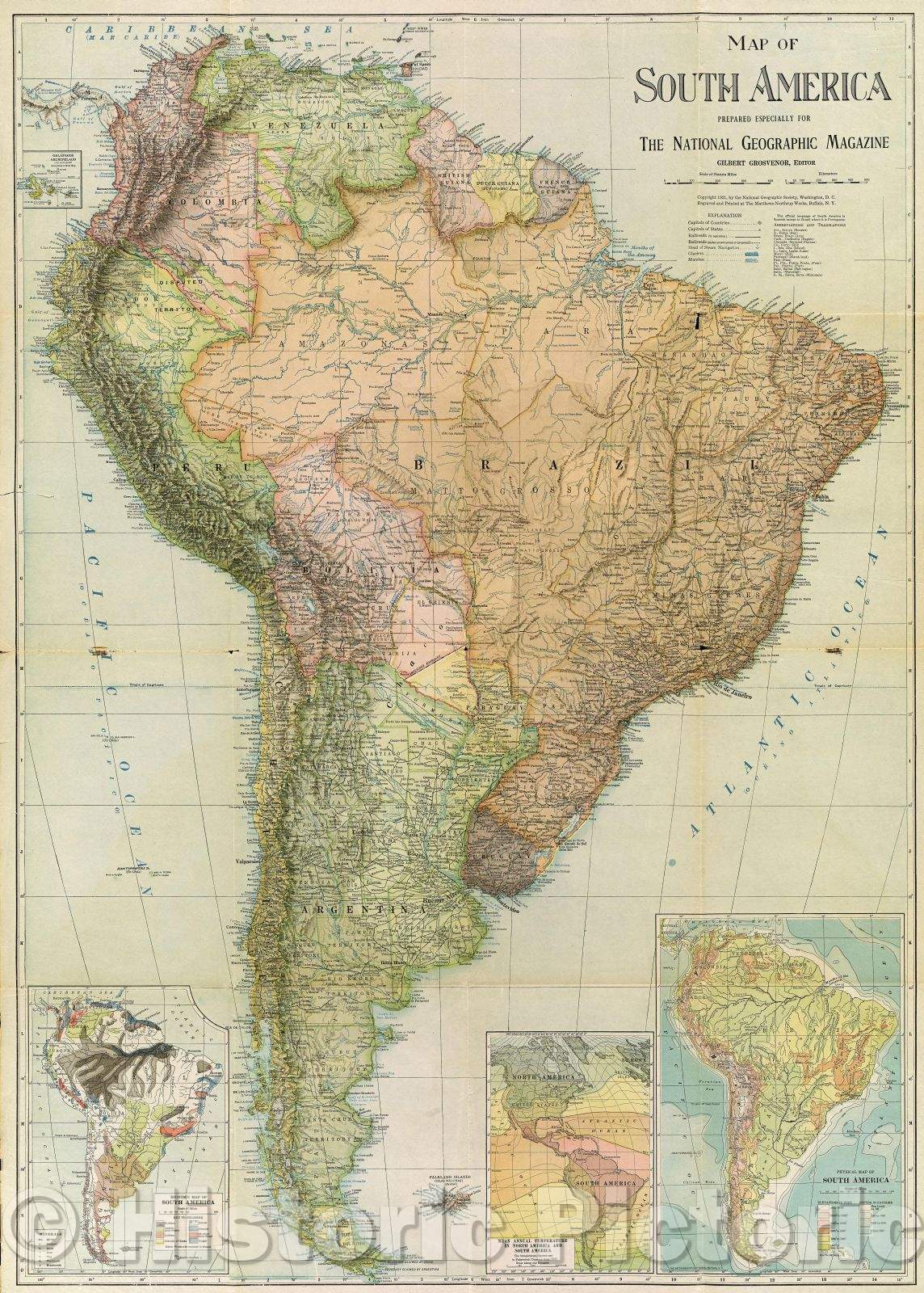 Historic Map : Map of South America, 1921 , Vintage Wall Art