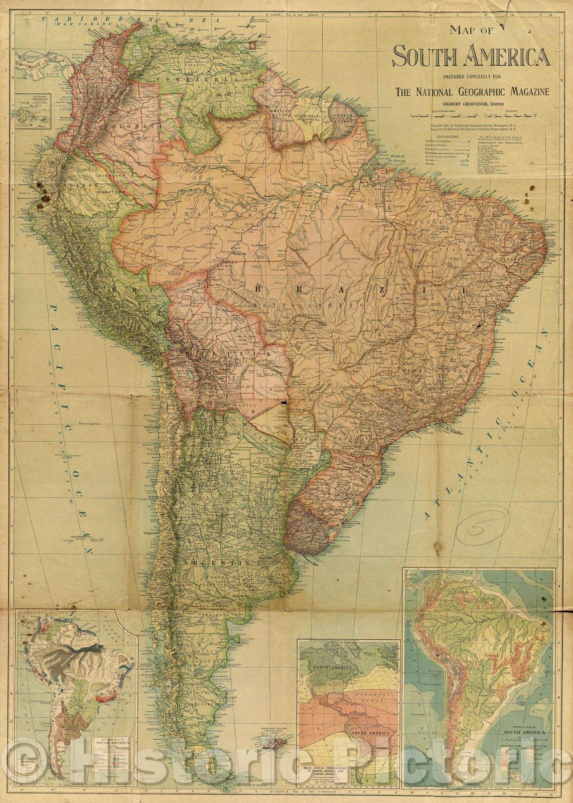 Historic Map : Map of South America, 1921 , Vintage Wall Art , v2