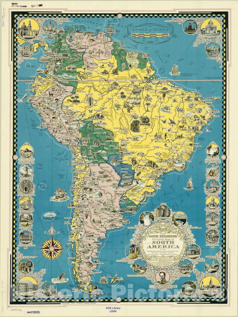 Map : South America 1942, The good neighbor pictorial map of South America , Antique Vintage Reproduction