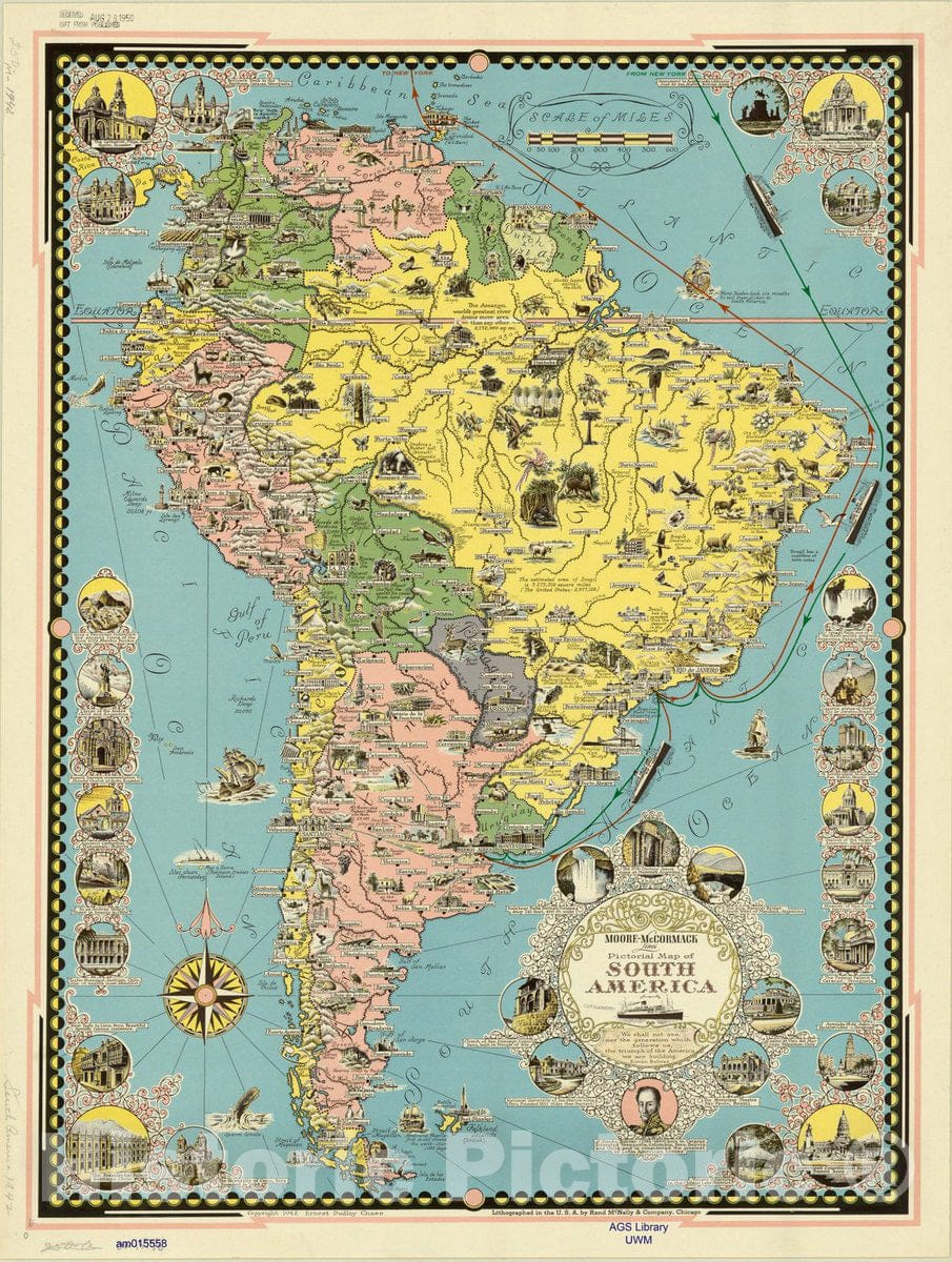 Map : South America 1942, Moore-McCormack Lines pictorial map of South America , Antique Vintage Reproduction