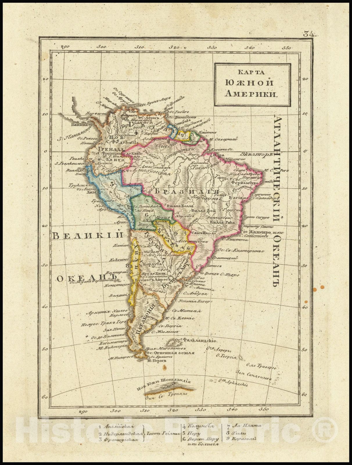 Historic Map : ???ra,Map of South America, 1836, Vintage Wall Art
