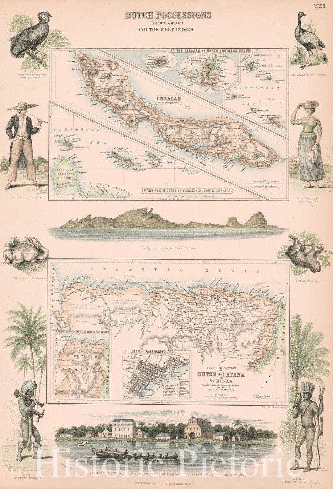 Historic Map - Curacao, Leeward Islands, Guyana, Dutch Possessions in South America and The West Indies, 1865, Archibald Fullarton & Co. - Vintage Wall Art