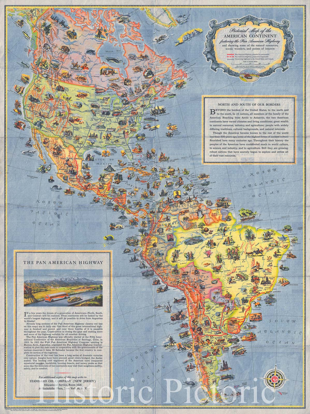 Historic Map : Pictorial Map of North America and South America , 1930, Vintage Wall Art