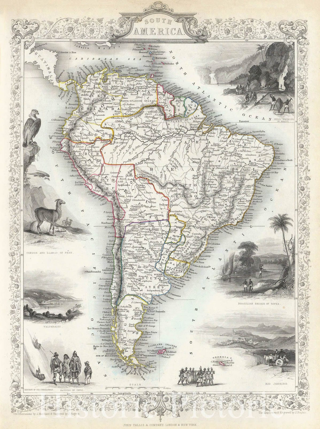 Historic Map : South America, Tallis, 1850, Vintage Wall Art