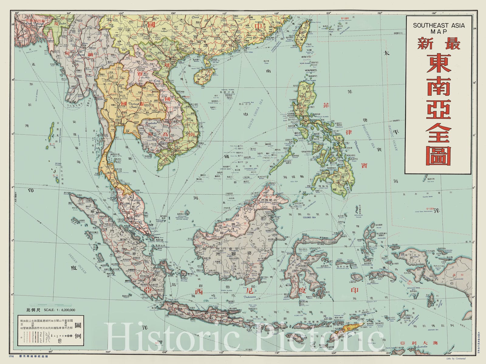 Historic 1950 Map - Zui Xin Dong nan ya Quan tu = Southeast Asia map
