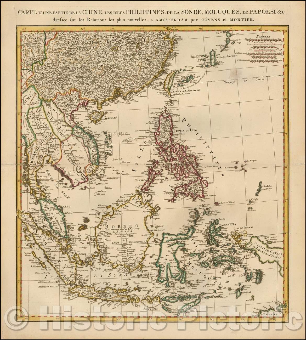 Historic Map - Carte d'une Partie de la Chine, les Isles Philippines, de la Sonde/Covens & Mortier's Map of China and Southeast Asia, 1735, Johannes Covens - Vintage Wall Art