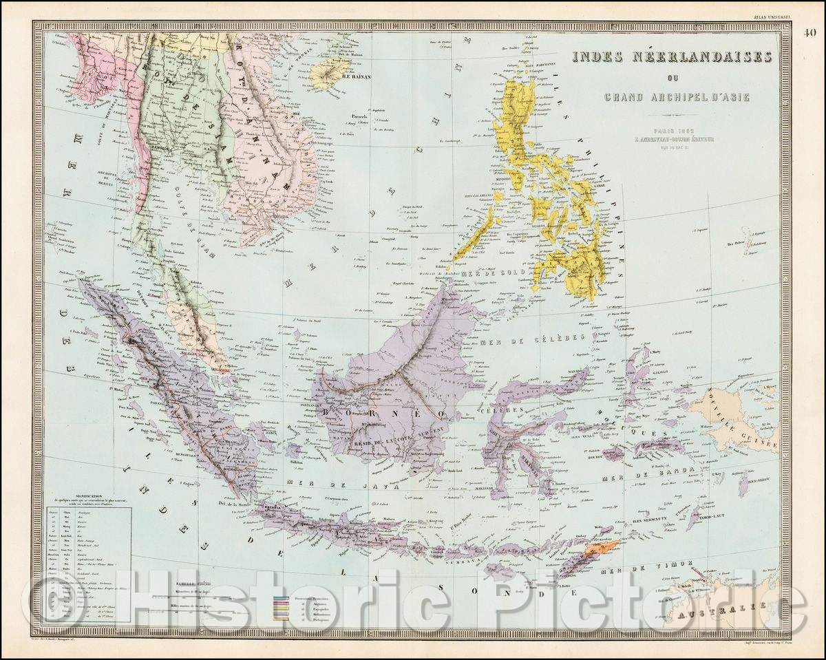 Historic Map - Indes Neerlandaises ou Grand Archipel D'Asie/Map Dutch Indies, Philippines, Southeast Asia, Spice Islands, 1862, J. Andriveau-Goujon - Vintage Wall Art