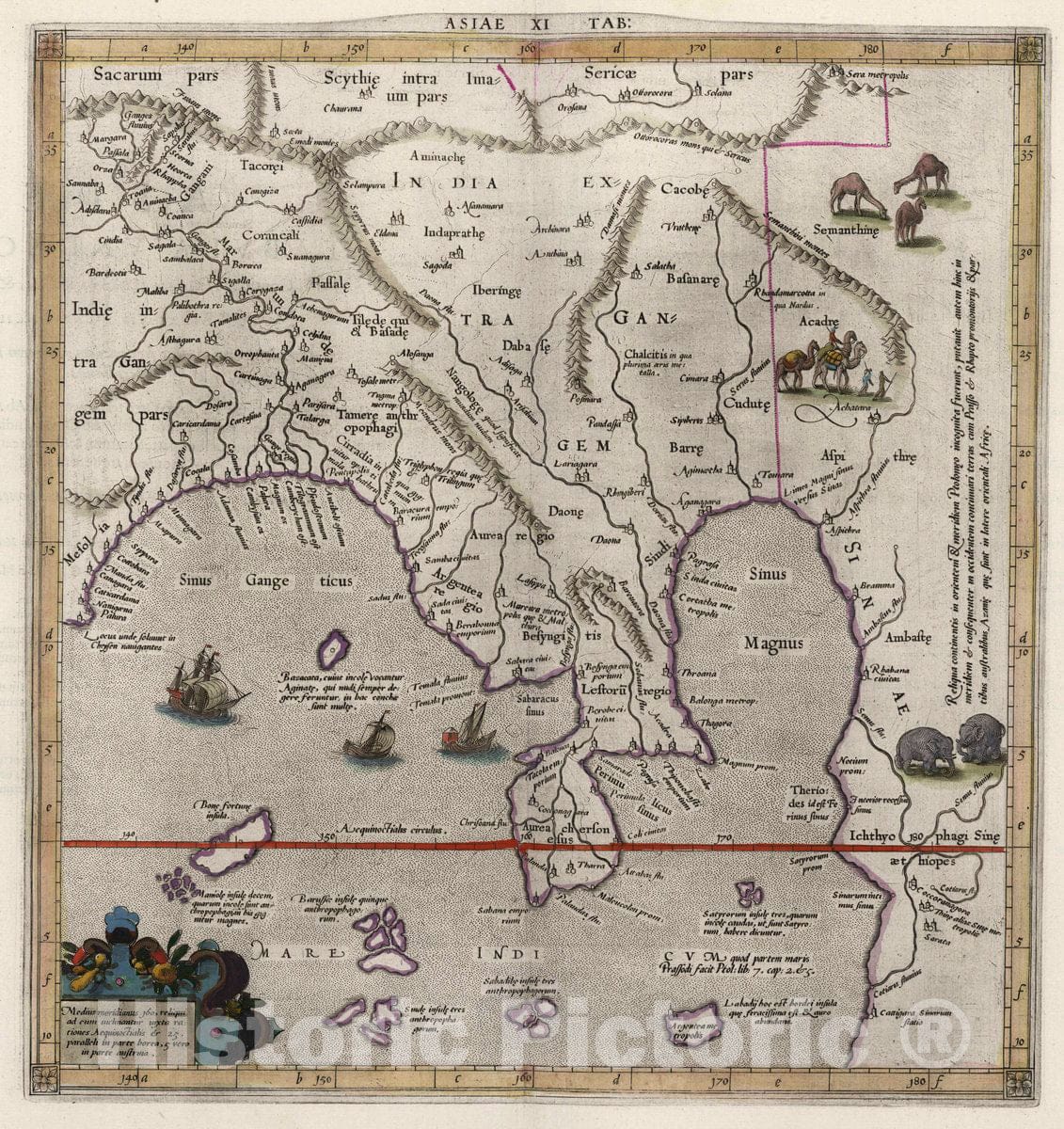 Historic Map : India, Southeast Asia Asiae, XI Tab. Tabvlarvm Ptolemaicarvm delineatio, 1618 Atlas , Vintage Wall Art