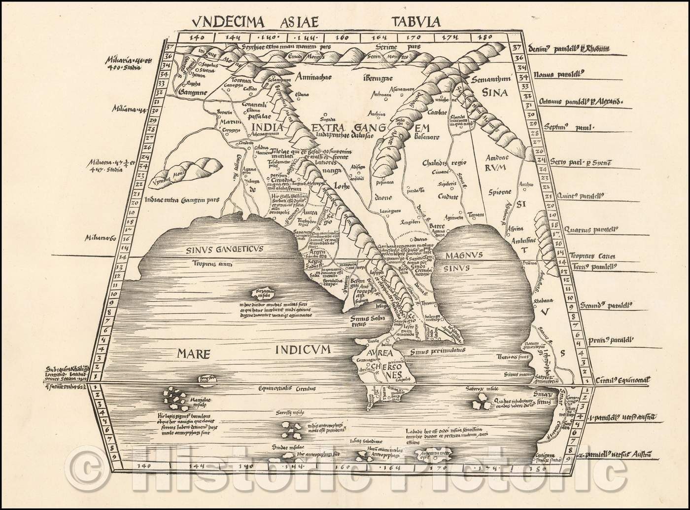 Historic Map - Undecima Asiae Tabula Southeast Asia, China and India, 1513, Martin Waldseem?ller - Vintage Wall Art