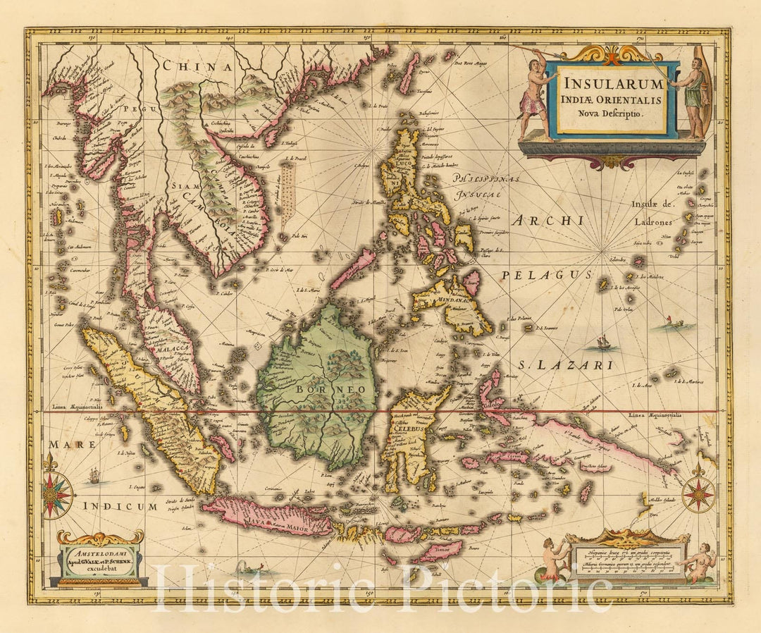 Historic Map - India Orientalis et Insulae Adiecentes/Map of Southeast Asia, China, India, the Philippines and western Oceana, 1638, Matthaus Merian - Vintage Wall Art