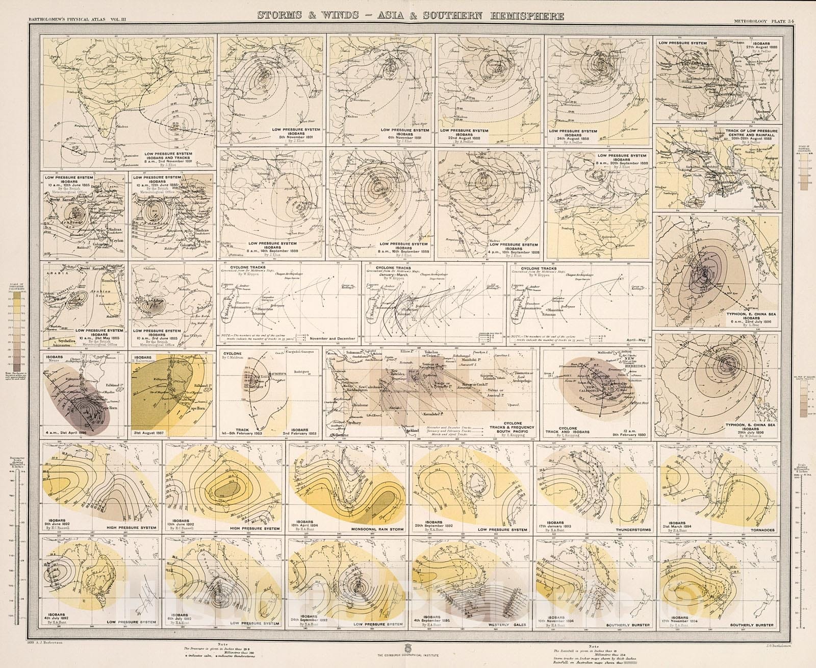 Historic Map : Plate 34. Storms & Winds - Asia & Southern Hemisphere., 1899, Vintage Wall Decor