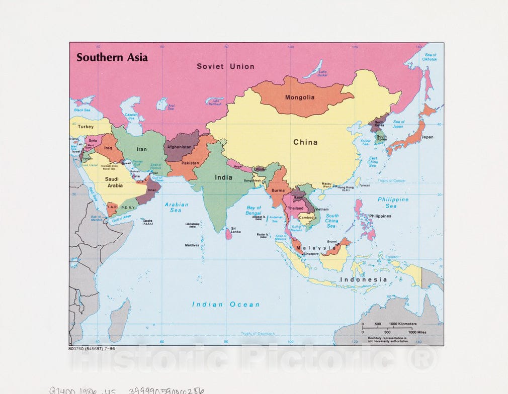Historical Map, 1986 Southern Asia, Vintage Wall Art