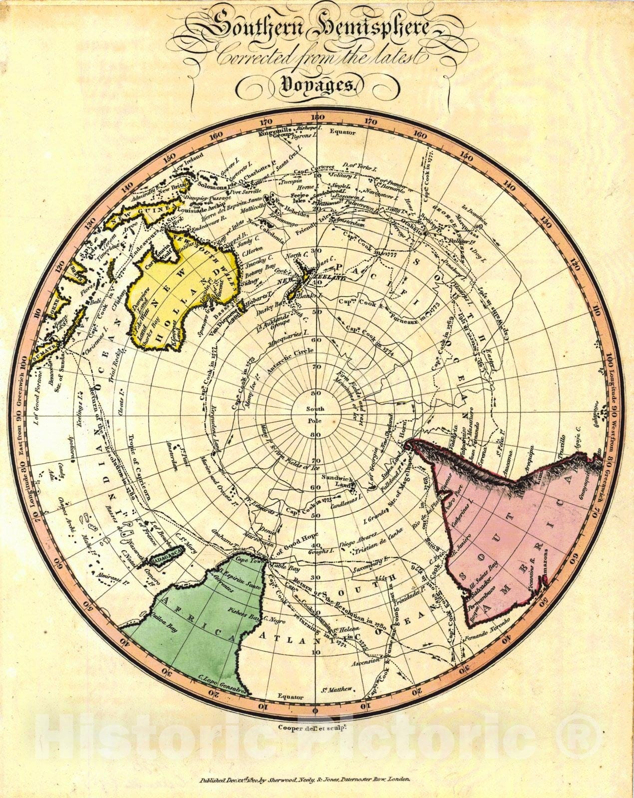 Historic Map : 1820 Southern Hemisphere Corrected from the Latest Voyages : Vintage Wall Art
