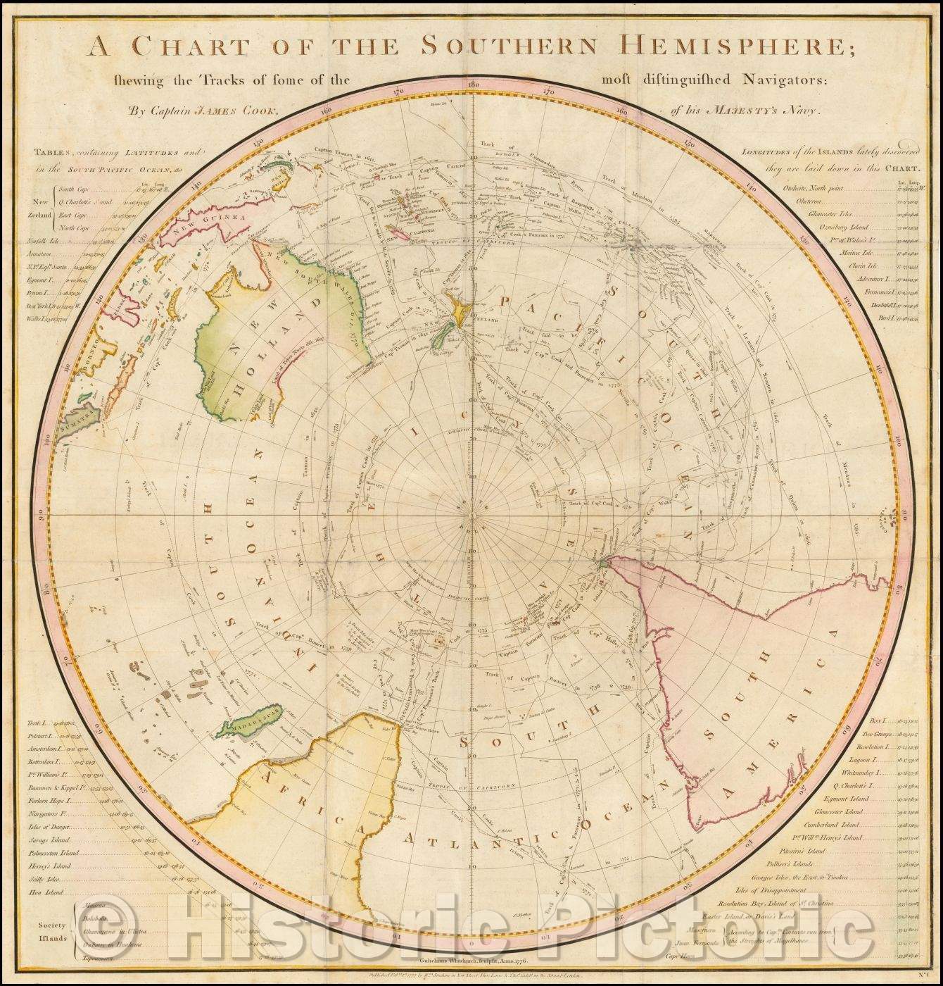 Historic Map - A Chart of the Southern Hemisphere; shewing the Tracks of some of the most distinguished Navigators, 1777, James Cook - Vintage Wall Art
