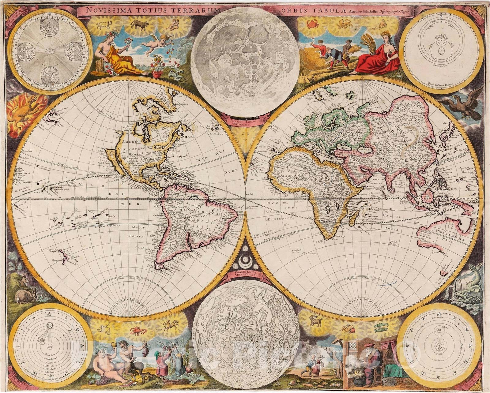 Historic Map : Novissima Totius Terrarum Orbis Tabula, Auctore Joh: Seller Hydrographo Regio, c1675, John Seller, Vintage Wall Art