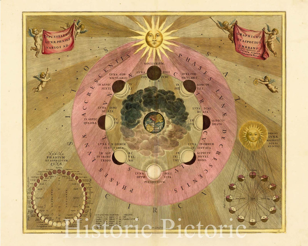 Historic Map - Typus Selenographicus Lunae Phases Et Aspectus Various Adumbrans, 1703, Andreas Cellarius - Vintage Wall Art