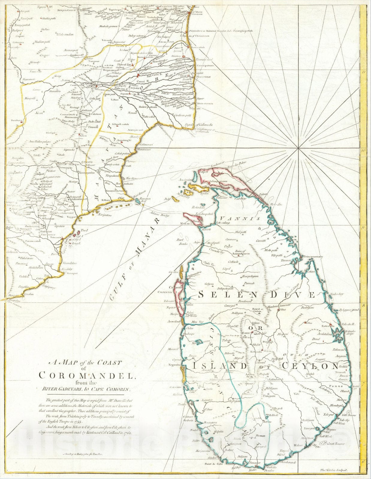 A Map of the Coast of Coromandel from the River Gadevari, to Cape Comorin [Sri Lanka], c1770, Thomas Kitchin