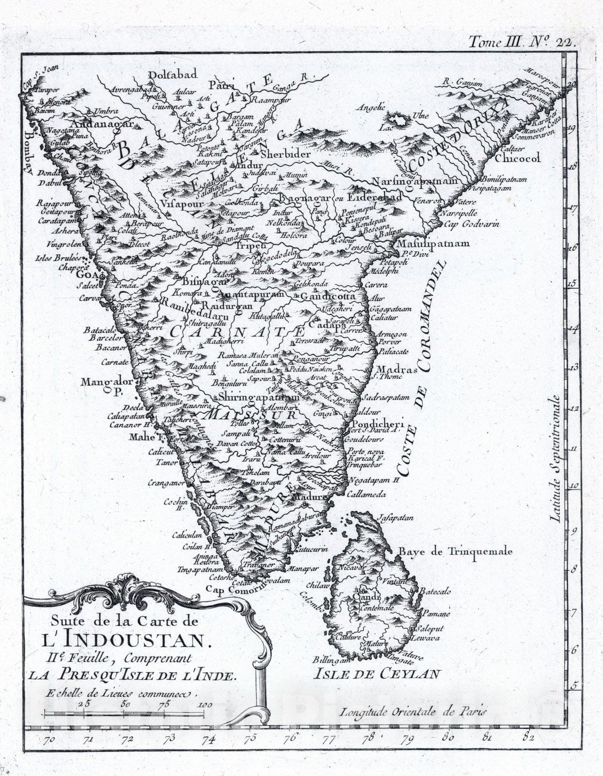 Historic Map : India; Sri Lanka, , Asia 1764 Suite de la Carte de l'Indoustan, IIe, Feuille, Comprenant la Presqu Isle de l'Inde , Vintage Wall Art