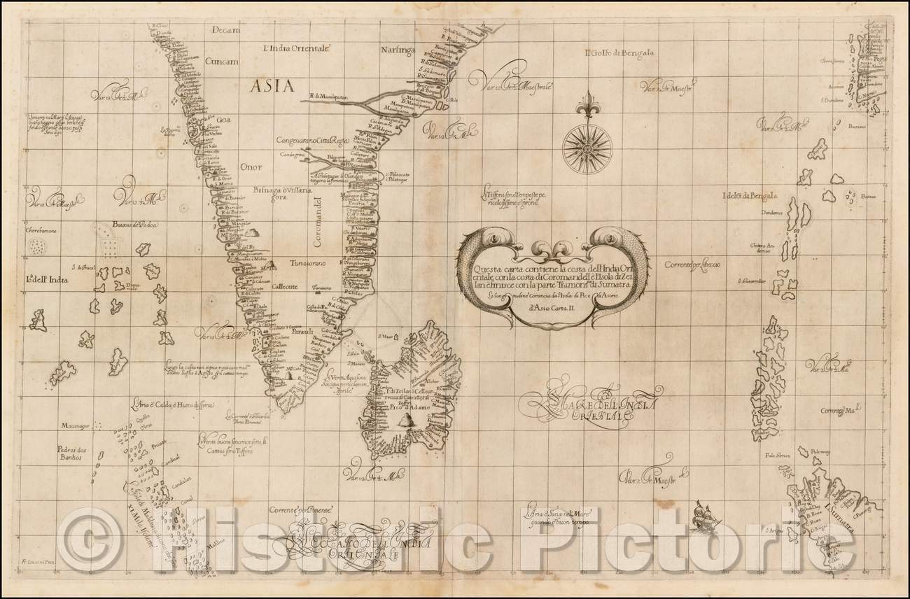 Historic Map - Questa carta contiene la costa dell India Orientale con La costa di Coroma :: Sea chart of India, Sri Lanka, the Maldives, Sumatra, 1646 - Vintage Wall Art