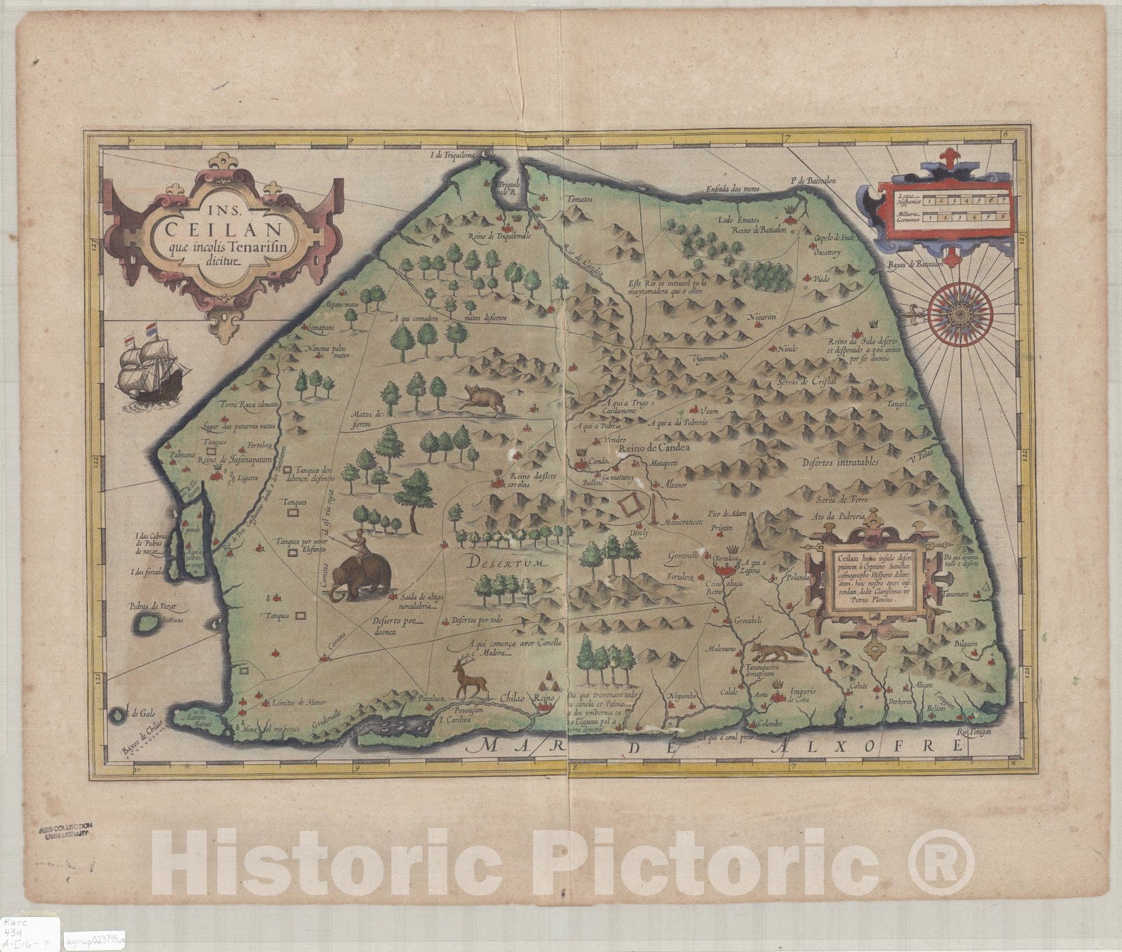 Map : Sri Lanka 1613, Ins. Ceilan qu incolis Tenarifin dicitur , Antique Vintage Reproduction