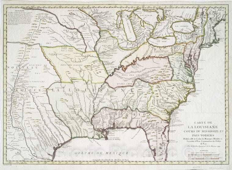 Historic 1744 Map - Carte De La Louisiane Cours Du Mississipi [I.E. Mississippi] Et Pais Voisins - United States - Maps - Early Works To 1800 - Charts And Maps