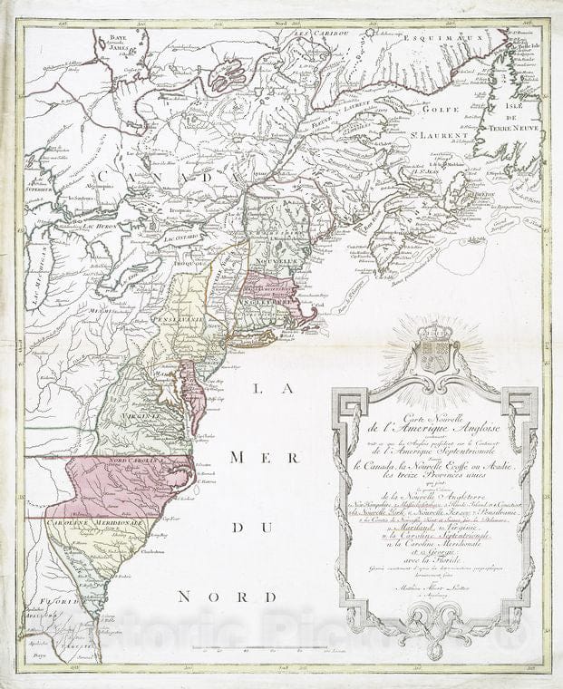 Historic 1776 Map - Carte Nouvelle De L'Amerique Angloise : Contenant Tout Ce Que Le - United States - Great Britain - America - North America - Charts And Maps