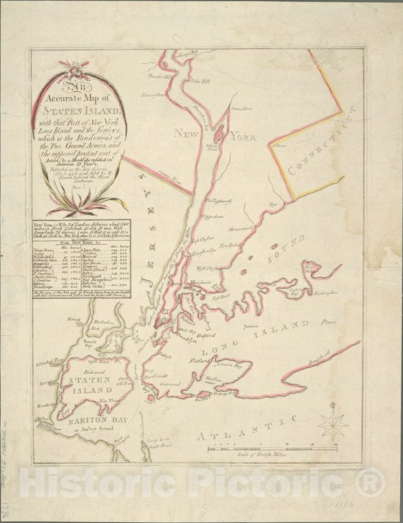 Historic 1776-10-03 Map - An Accurate Map Of Staten Island : With That Part Of New York, L - Vintage Wall Art