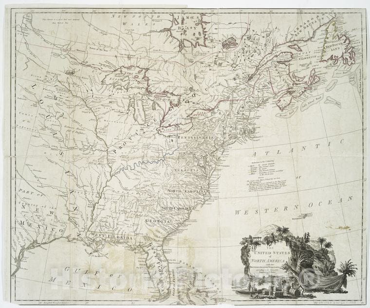 Historic 1783 Map - The United States Of North America, With The British & Spanish T