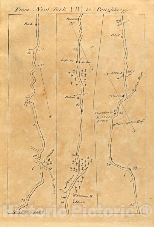 Historic 1789 Map - From New York (8) To Poughkeepsie. - Middle Atlantic States - United States - A Survey Of The Roads Of The United States Of America - Vintage Wall Art
