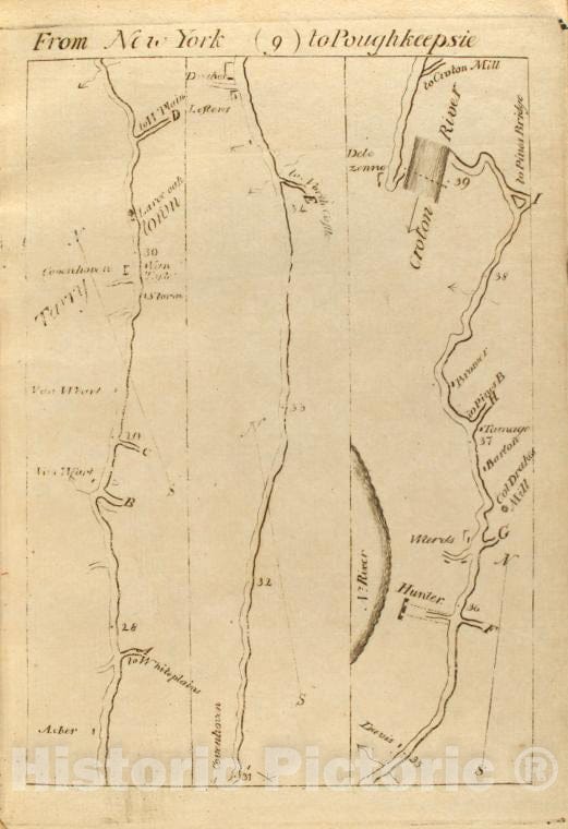 Historic 1789 Map - From New York (9) To Poughkeepsie. - Middle Atlantic States - United States - A Survey Of The Roads Of The United States Of America - Vintage Wall Art