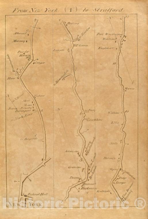 Historic 1789 Map - From New York (1) To Stratford. - Middle Atlantic States - United States - A Survey Of The Roads Of The United States Of America