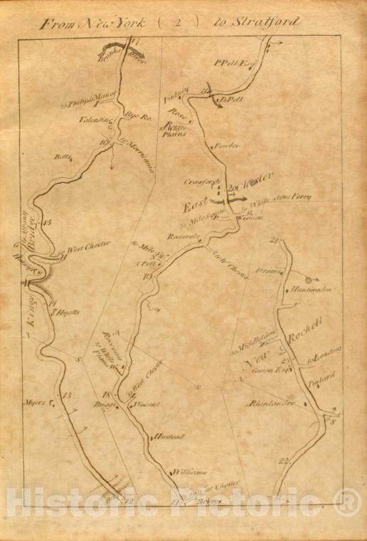 Historic 1789 Map - From New York (2) To Stratford. - Middle Atlantic States - United States - A Survey Of The Roads Of The United States Of America