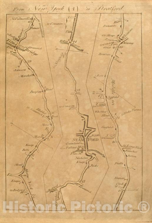 Historic 1789 Map - From New York (4) To Stratford. - Middle Atlantic States - United States - A Survey Of The Roads Of The United States Of America - Vintage Wall Art