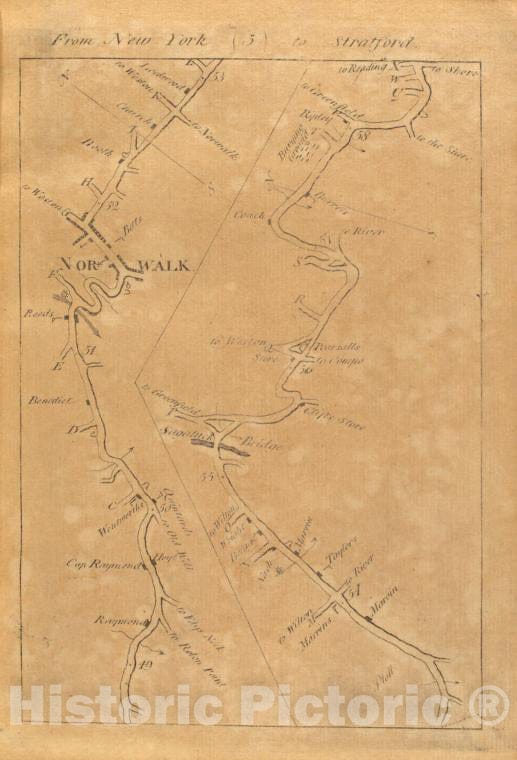 Historic 1789 Map - From New York (5) To Stratford. - Middle Atlantic States - United States - A Survey Of The Roads Of The United States Of America