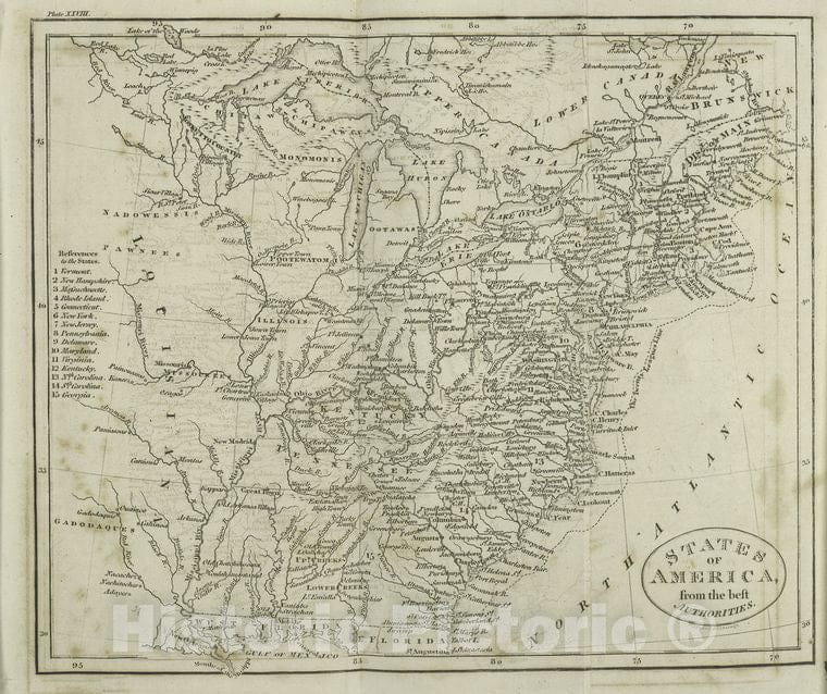 Historic 1812 Map - States Of America, From The Best Authorities - United States - United States - Maps - A New Geographical, Historical, And Commercial Grammar